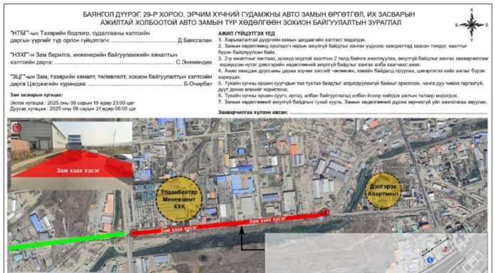 Иймд иргэд, жолооч та бүхэн шөнийн цагаар бусад замыг сонгон хөдөлгөөнд оролцоно уу.