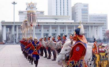 Эзэн Богд Чингис хааны мэндэлсний 863 жилийн ой, “Монгол бахархлын өдөр”-ийг тохиолдуулан жанжин Д.Сүхбаатарын талбайд Төрийн далбааг мандуулж, Төрийн есөн хөлт Их цагаан тугийг нар зөв гороолон цэнгүүллээ.