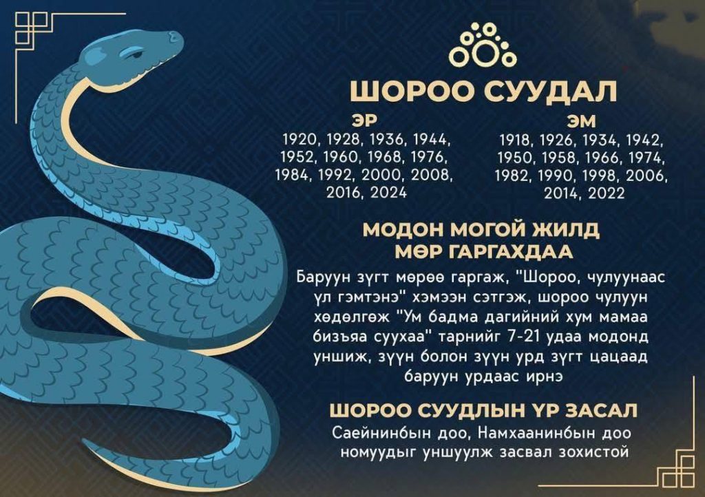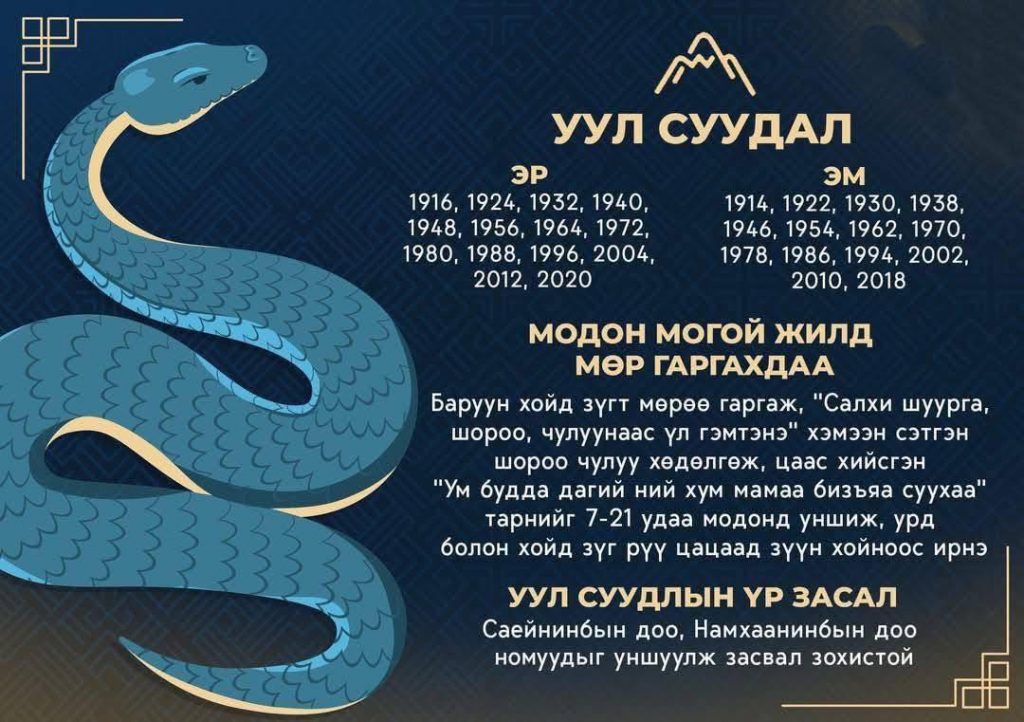 Уул суудлын цээр: Ан гөрөө хийх, нойтон мод огтлох, бохир идээ, хар малгай, хувцас авах, өмсөхийг цээрлэ. Зэр зэвсэг, гудас бүү ав. Өвс татах, газар хөдлөх үеэр анхаар. Луу сар барцадтай, өмнө зүг тааруу. Бар сарын 11-ний шөнө зүүн өмнө ба хойд зүгт бүү яв. Цангах, үс унах, яр шархнаас сэрэмжил.