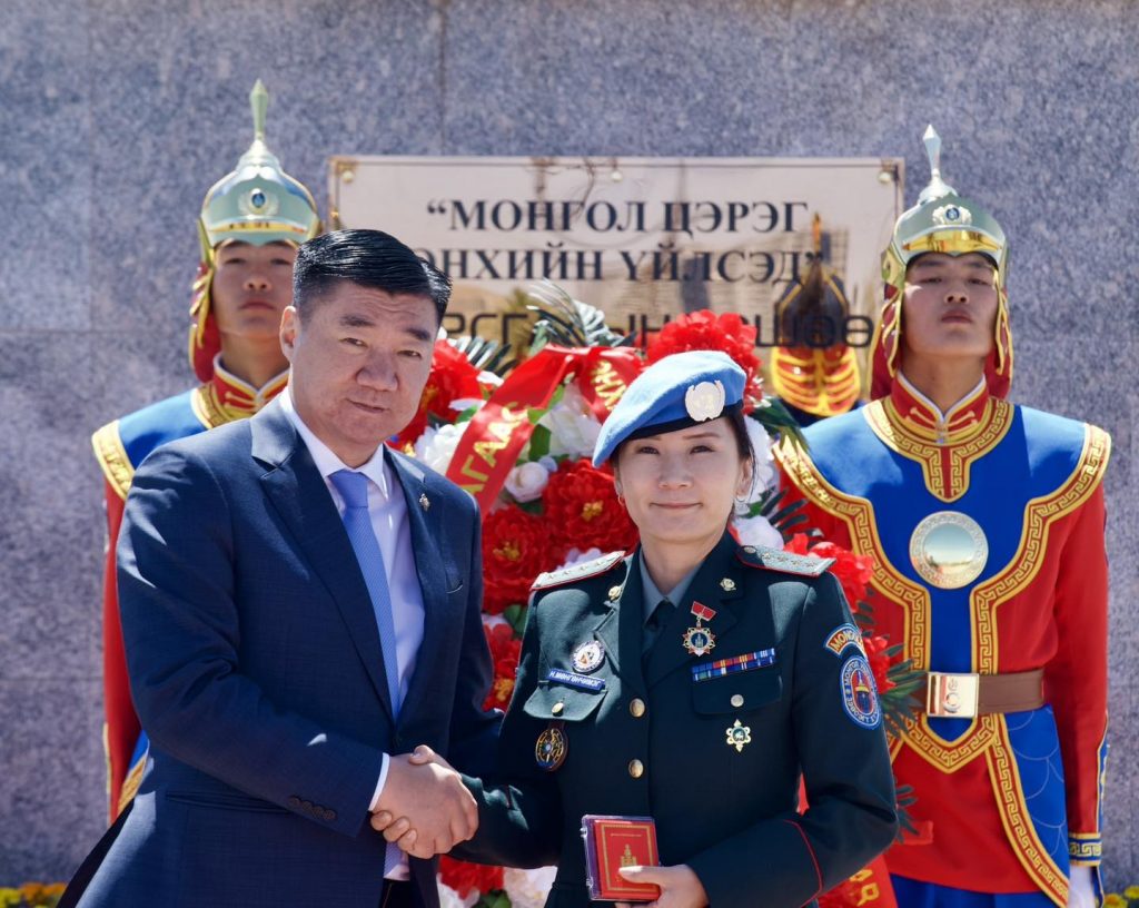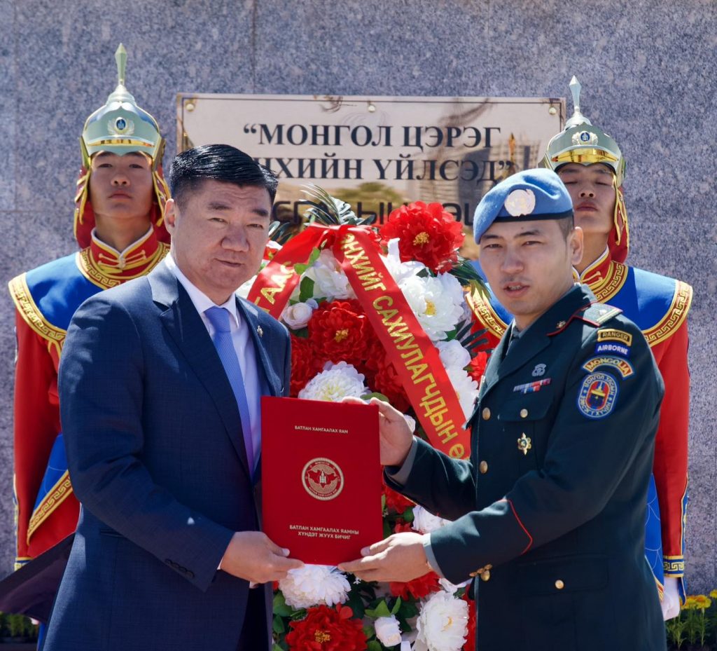 Монгол Улсынхаа нэр хүндийг өндөрт өргөж яваа энхийг сахиулагчдынхаа дурсгалын цогцолборт цэцэг өргөж, хүндэтгэл үзүүллээ.