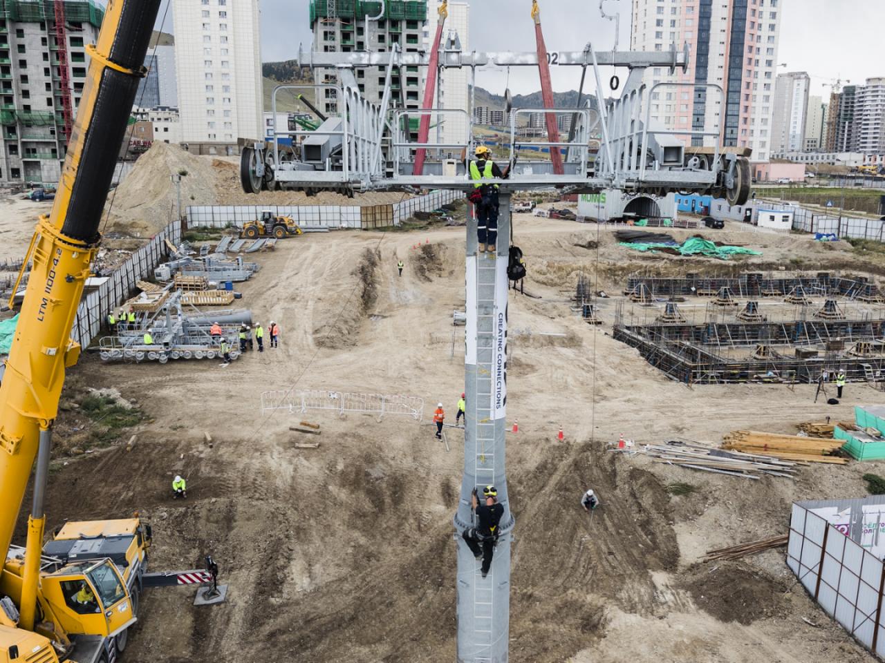 “Моннис инженеринг” ХХК-ийн төслийн менежер Б.Мөнхбаясгалан “Дүүжин замын тээврийн Яармаг дахь буудлын дэргэд байрлах энэхүү тулгуур багана нь 5.5 – 9.5 метрийн өндөртэй. Харин өндөрлөг газар буюу зарим хэсэгт 42 метр өндөртэй тулгуур баганыг суурилуулна. Ил харагдах тулгуур багануудын дор, газрын гүнээс доош 20 метрт суурийг бэхэлж суурилуулсан. Ингэхдээ газар хөдлөлтөд тэсвэртэй байх, геологийн онцлог нөхцөл зэрэг олон улсын стандарт шаардлагыг мөрдөж, аюулгүй технологи бүхий бүтээн байгуулалтыг хийсэн” гэв.