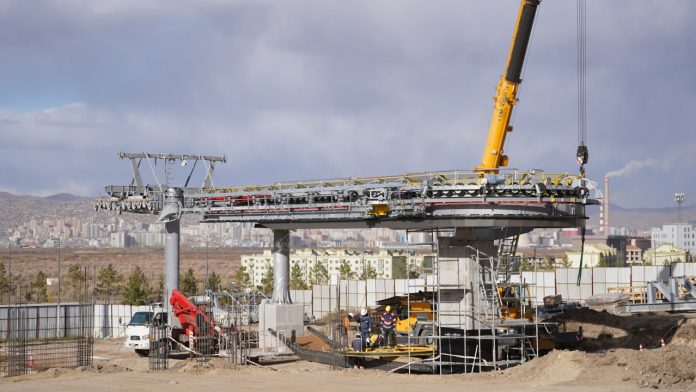 Дүүжин замын тээвэр төслийн Яармаг дахь буудлын эргэлтийн зам төмрийг суурилууллаа. Дүүжин замын тээврийн системийн тросс, кабин хөдөлгөөний үндсэн бүтцийн нэг болох энэхүү эргэлтийн зам төмрийг Яармаг болон Хархоринд байрлуулах бөгөөд тус чиглэлд нийт 19 тулгуур багана суурилуулахаас одоогийн байдлаар зургаан тулгуур баганыг босгоод байна. Мөн буудлын дэргэд кабин байрлуулах гаражийн барилгын ажил хийгдэж, суурь, бетон цутгалтын ажил үргэлжилж байна. Энэхүү төслийн бүтээн байгуулалтыг Францын Пома группийн инженерүүд ахалж, “Моннис инженеринг” ХХК туслан гүйцэтгэгчээр ажиллаж байгаа юм.