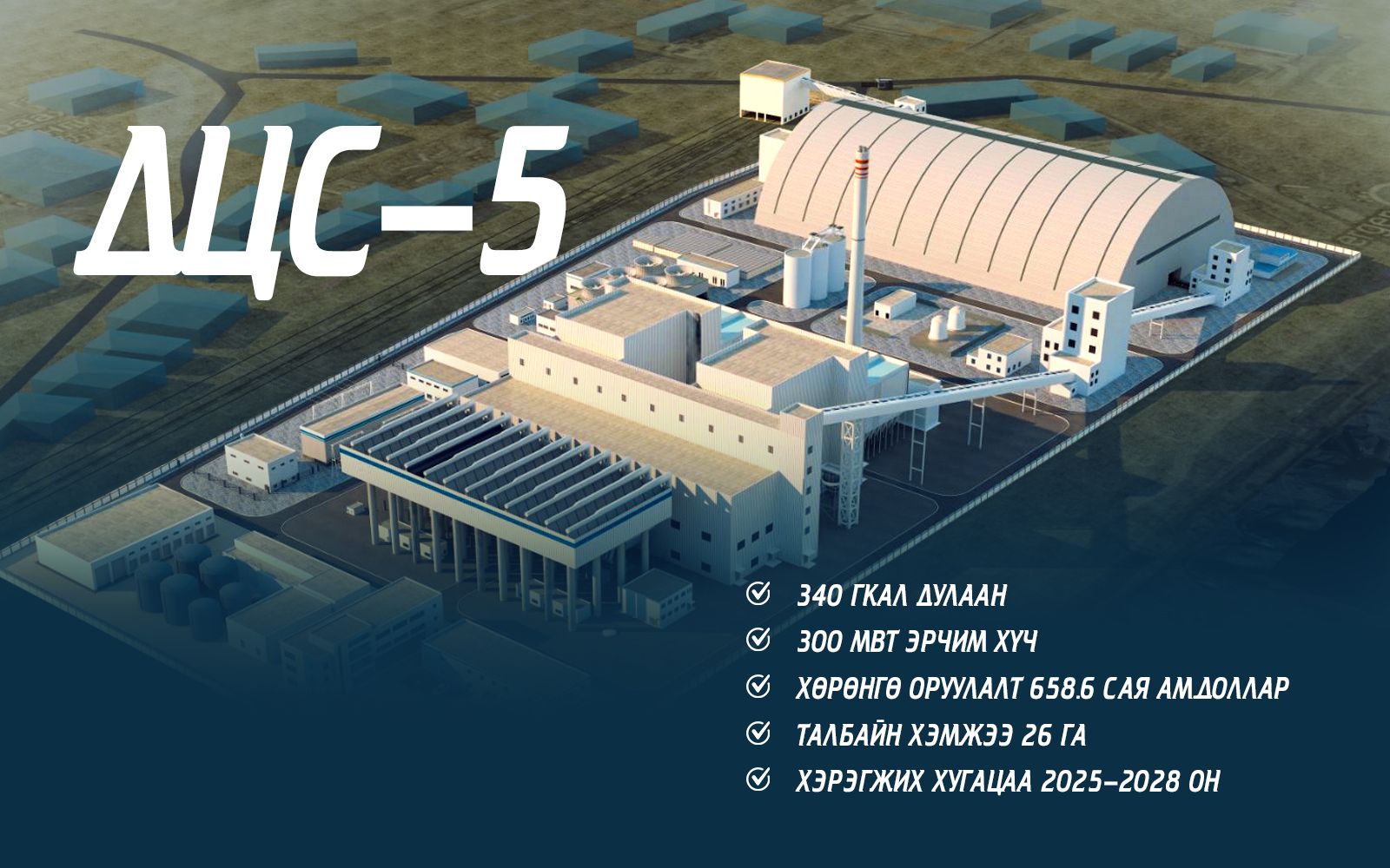 Улаанбаатар хотыг хөгжүүлэх 24 мега төслийн хүрээнд төр, хувийн хэвшлийн түншлэлээр ТЭЦ-5 дулааны цахилгаан станцыг барина. Дулааны тавдугаар цахилгаан станц төслийг Улаанбаатар хотын Баянгол дүүргийн 20-р хорооны нутаг дэвсгэр ДЦС-2-ын үнсэн сангийн талбайн байршилд нийт 26 га газарт хэрэгжүүлэхээр төлөвлөөд байна. Тухайн байршлыг сонгох болсон шалтгаан нь харилцаа холбоо, авто болон төмөр замын тээврийн дэд бүтэц сайтайгаас гадна түлш, үнс агуулах талбай нь бэлэн байгааг тооцоолжээ.