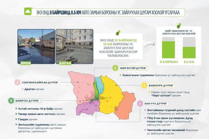 Харин 2026 онд ГУББГ-аас ус тогтдог байршлуудад нийт 30 км борооны ус зайлуулах шугам угсрахаар төлөвлөөд байна.