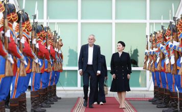 Монгол Улсын Ерөнхийлөгч Ухнаагийн Хүрэлсүх, Бүгд Найрамдах Австри Улсын Ерөнхийлөгч Александр Ван дер Беллен нар Төрийн ордонд албан ёсны хэлэлцээ хийлээ.