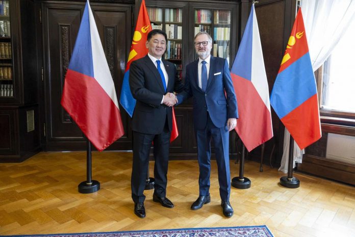 Монгол Улсын Ерөнхийлөгч У.Хүрэлсүх Бүгд Найрамдах Чех Улсад хийж буй төрийн айлчлалынхаа үеэр тус улсын Ерөнхий сайд Петр Фиалаг хүлээн авч уулзлаа.