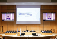 Улсын Их Хурлын дарга Д.Амарбаясгалан Монгол Улс эрх зүйт ёс, хүний эрх, ардчиллын үнэт зүйлс, тогтвортой хөгжлийг ахиулахад ОУПХ-той тууштай хамтран ажиллахаа нотолж буйгаа тэмдэглэв. Түүнчлэн, Монгол Улсын Их Хурал хүний эрхийг хамгаалах, хангах, хүн төвтэй хууль, эрх зүйн орчныг бүрдүүлж ажиллах “Гурван төгөлдөршил” санаачилгыг дэвшүүлсэн гэдгийг онцоллоо.