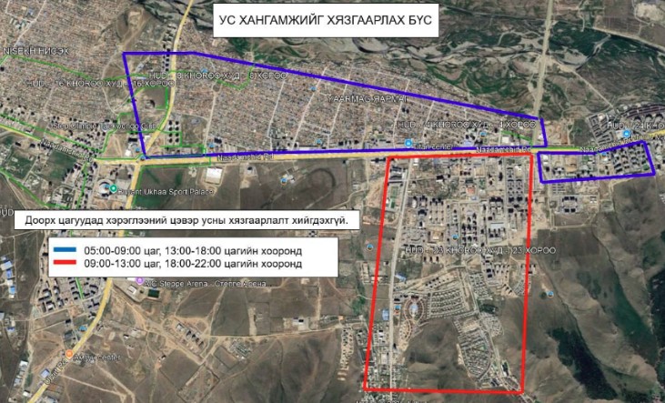 Яармагийн бохир усны II өргөх насос станцын шугам хоолой болон хүлээн авах санд хуримтлагдсан хогийг цэвэрлэж, засвар үйлчилгээ хийнэ. Энэ хүрээнд ХУД-ийн 5, 6, 7, 23, 24 дүгээр хорооны хэрэглээний усыг өнөөдөр 22:00 цагаас 11 дүгээр сарын 8-ны 08:00 цаг хүртэл хэсэгчлэн хязгаарлана. Хэсэгчлэн ус хаах хэсэгт “Food City” худалдааны төвөөс баруун тийш “Нүхтийн ам” хүртэл, замын хойд талдаа “Мөнх Хадаа”-аас Нисэхийн тойрог хүртэл суурьшлын хэсэг хамрагдах юм.
