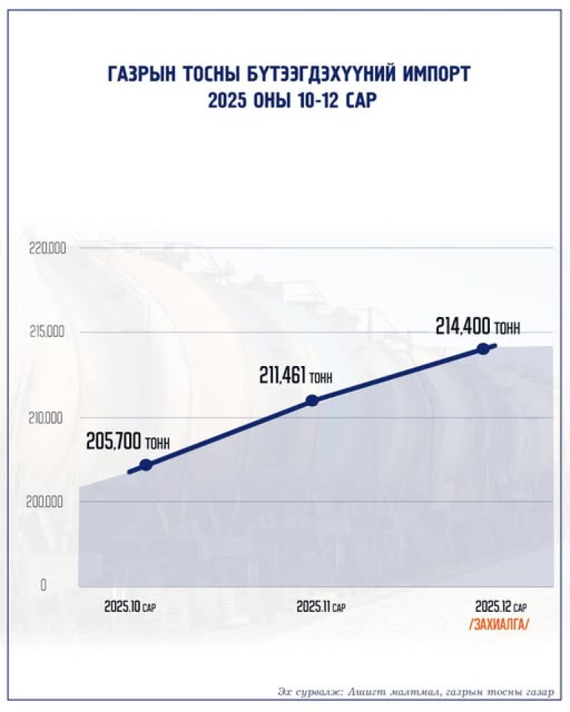 Манай улс 12 дугаар сард 214.400 тонн шатахуун худалдан авахаар захиалга өгчээ.